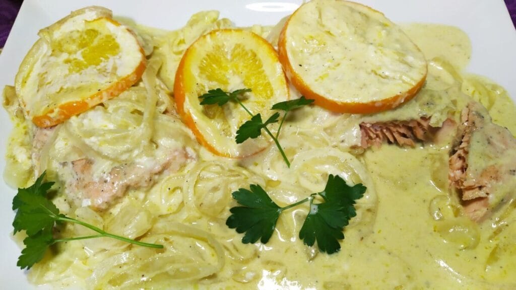 salmon con naranja y nata