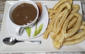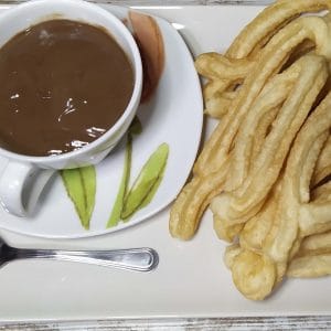 Acompañe a los churros de un chocolate bien espeso como me gusta a mi, es uno de los que venden en polvo y se lo pones a la leche caliente, removemos y a disfrutar de una merienda o desayuno delicioso.