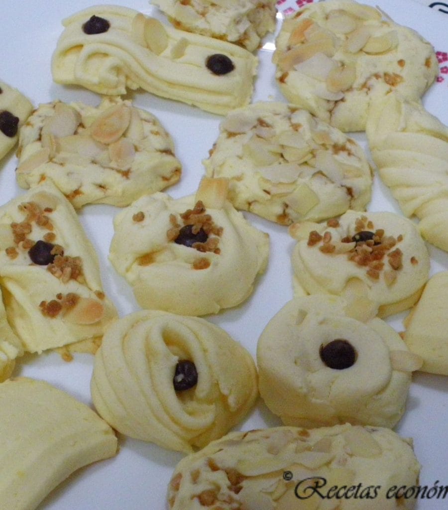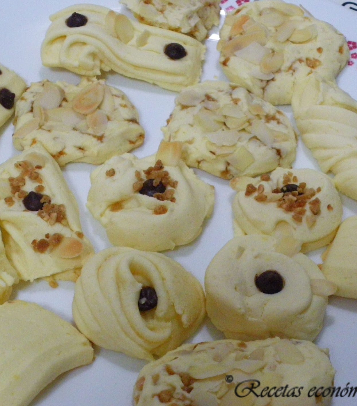 Las hice de varias clases: con almendras, con gotas de chocolate y normales. El azúcar lo sustituí por el azúcar vainillado.